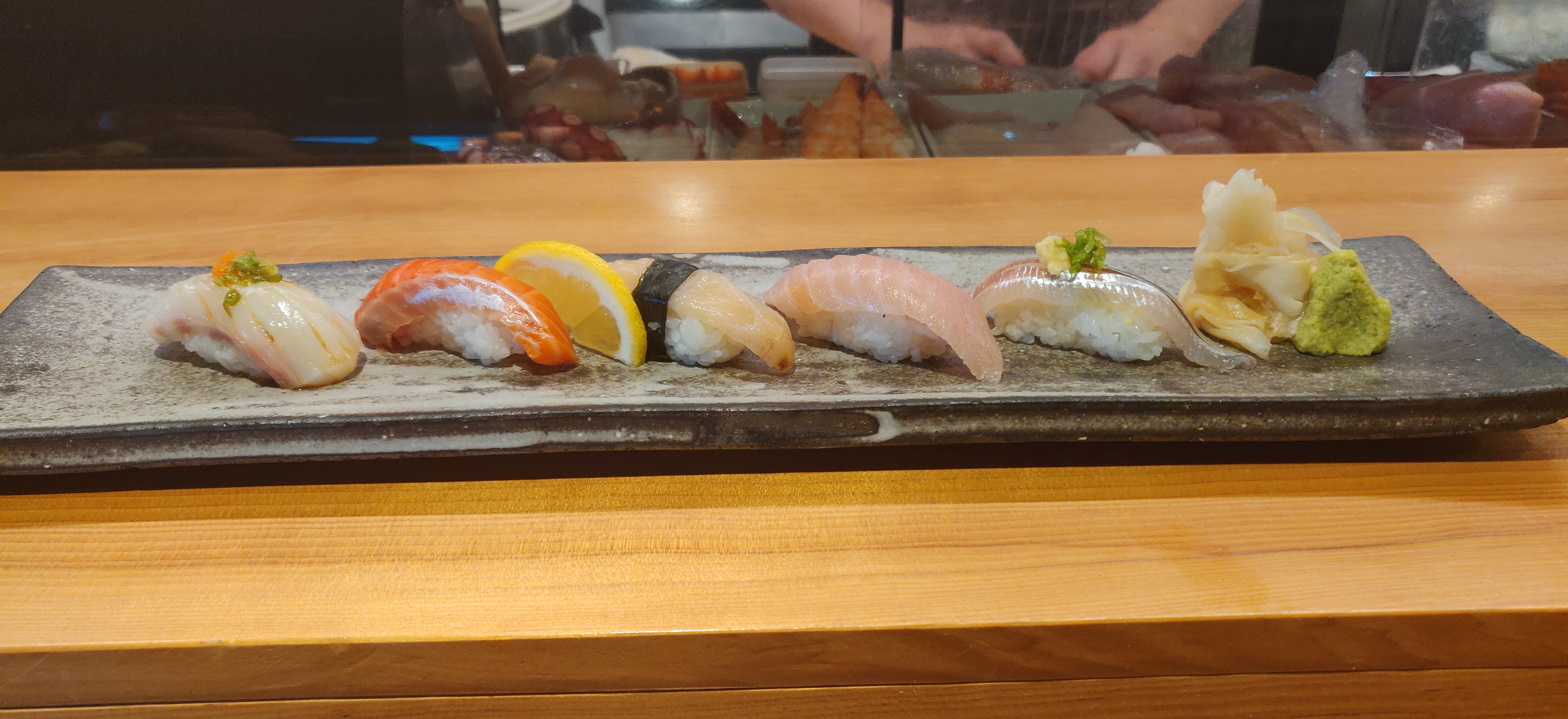 I went with my brother, because he always wants to come here before he leaves town. If you were to look at the menu, you can see a wide variety of sashimi/nigiri for you to choose from. There is also many hot dishes that ranges from tempura to black cod. But we never order any of those things, because we always come for one thing: their Omakase, which, in Japan, means you leave everything to the chef. It’s worth noting that Tamura offers other option in terms of course meals. There is the two course, the three course, and the five course options as well as the sushi, sashimi, and chef’s Omakase.