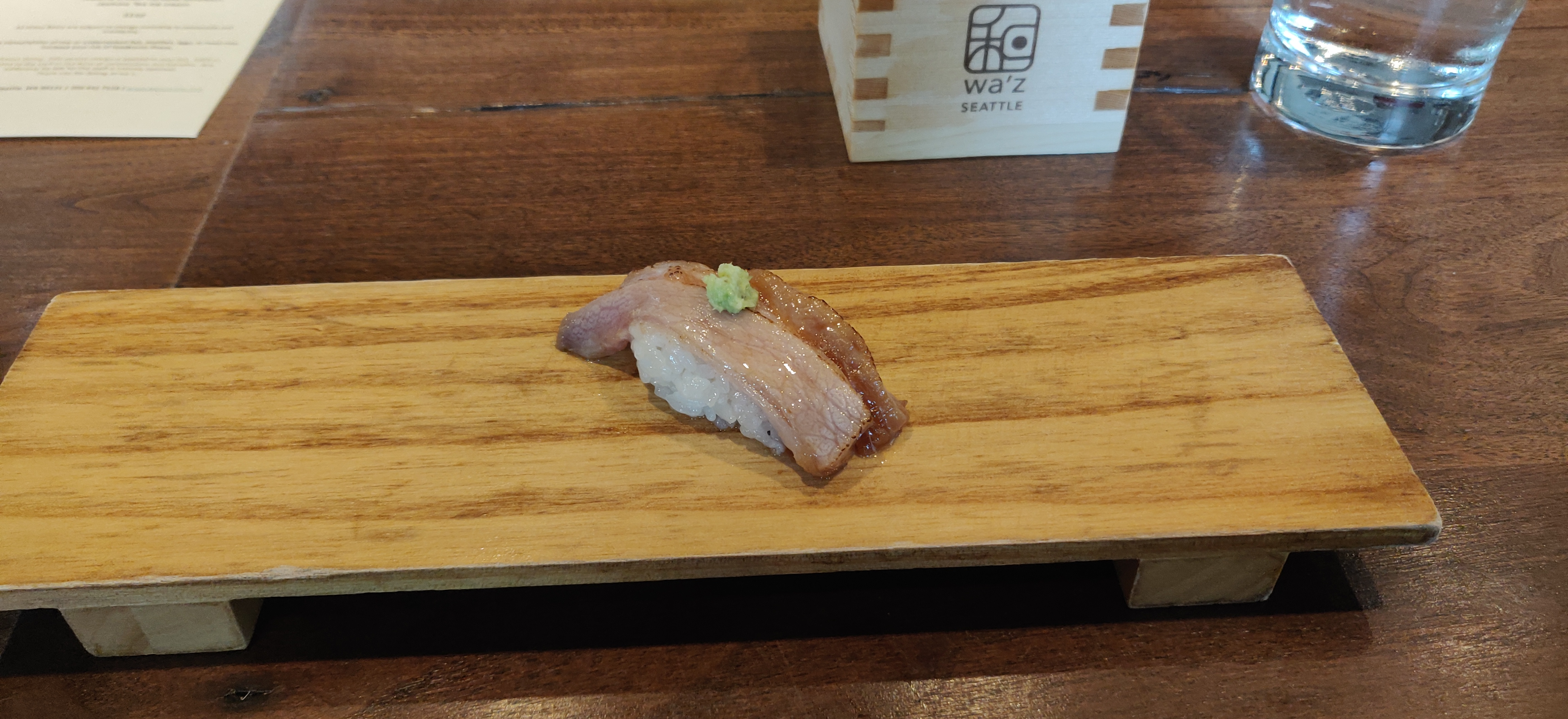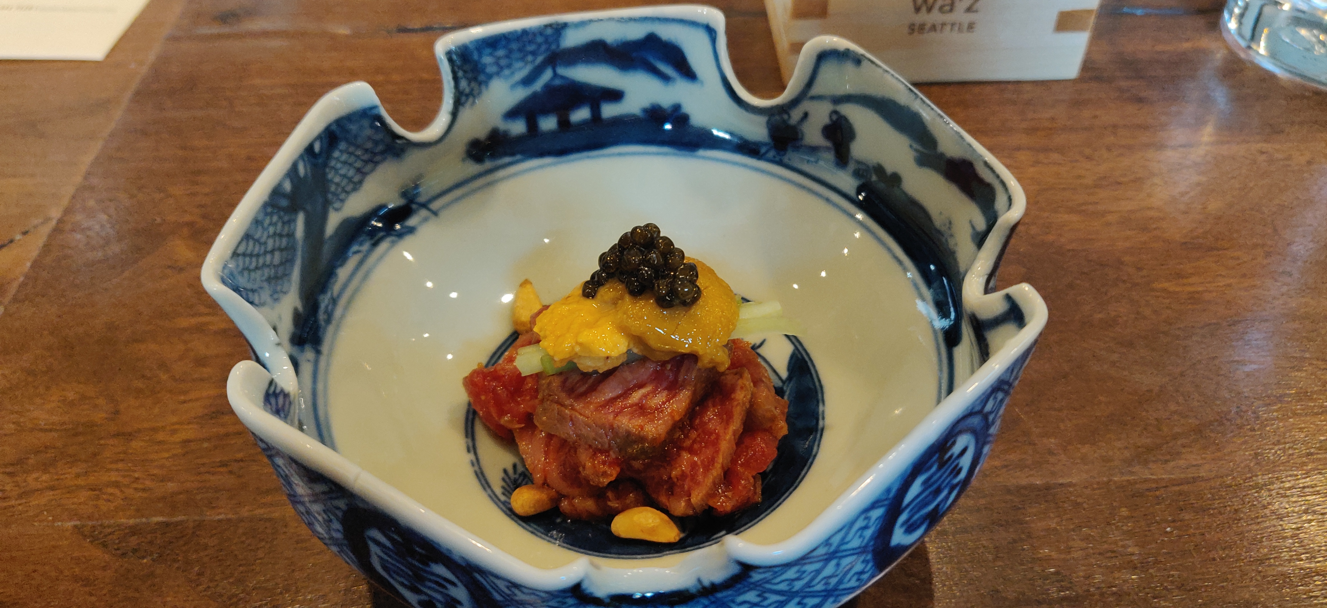 Wa’z is a place you would go if you want an experience. It is a place for you to sit down and see what a multi-course meal from Japan will give you in a modern and western style of serving. I would recommend you to going there at least once, if not two eat, then to take advantage of their sake list. Just a word of advice, it is downtown Seattle, so parking is hard.
